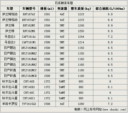 日韓系陣營(yíng)中,整體態(tài)勢(shì)較為平均,而起亞品牌的車型沒有新車型入選比較令人感到意外。占據(jù)最大份額的是日產(chǎn)品牌,頤達(dá)、騏達(dá)以及軒逸三款車型共有6款車型入選。鈴木有四款車型登錄目錄,都是同一款車型——北斗星。而飽受召回門困擾的豐田也只有一款自動(dòng)檔卡羅拉進(jìn)入第二批大名單中。
