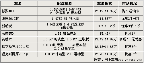 售價在15萬左右的車型配備后排出風口的車型包括了標致408、速騰2010款、新明銳、榮威550、英朗XT和?怂箖蓭龓。其中標致408和速騰2010款全系均采用此項配置,但是由于價格原因只有部分入選。除了英朗XT外,其余6款車都有現(xiàn)金優(yōu)惠。
