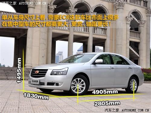 車身尺寸早就成為中國人選擇中型車的一個重要參考指標,而帝豪EC8車型的車身尺寸為長*寬*高:4905mm*1830mm*1495mm,其中車身長度為4905mm,這樣的尺寸在國內在售的中型車中是相對較大的,另外2805mm的軸距也是一個相當有誘惑力的數(shù)字。同級車中最長的車身與長軸距就為這款車在內部空間上上帶來了相對富足的空間,究竟內部空間怎樣我們下面會詳細說。