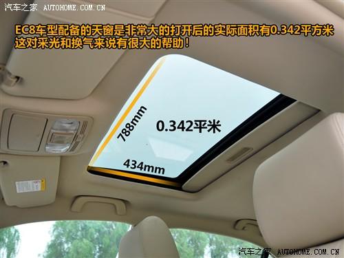 較長(zhǎng)的車身尺寸使得EC8車型在后備箱容積上也有同級(jí)車中相對(duì)較大的容積-504L,不過(guò)后備箱看后有些不方便,進(jìn)入大件物品比較費(fèi)勁。