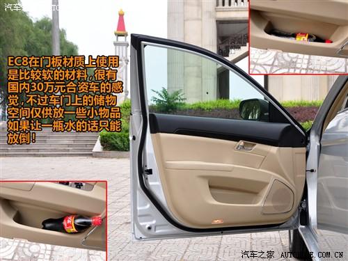 上面我們說(shuō)了,帝豪EC8在內(nèi)飾上使用的材質(zhì)上均為軟質(zhì)材料,摸起來(lái)很有手感,材質(zhì)的質(zhì)地與做工與國(guó)內(nèi)20-30萬(wàn)元的車型很有一拼。不過(guò)在一些小細(xì)節(jié)上,EC8還需進(jìn)行一些處理,如車門上的儲(chǔ)物槽!