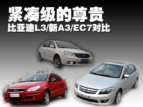 比亞迪L3和奇瑞新A3上市時間還不到半個月,而帝豪EC7推出已經(jīng)有一年的時間了,這三款車型有兩款都是新產(chǎn)品,而且都推出了1.8L尊貴型配置產(chǎn)品,在價格、動力以及配置方面都有很多共同之處,直接形成競爭趨勢。我們對這三款尊貴型車型進行對比,目的是看看這三款產(chǎn)品在參數(shù)、動力以及配置方面究竟都有哪些過人之處。