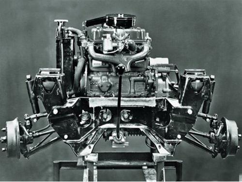其創(chuàng)新就是將散熱器安置在了車的左側(cè),從而在狹小的發(fā)動(dòng)機(jī)艙內(nèi)能夠?qū)⑸犸L(fēng)扇保留。這種設(shè)計(jì)大大節(jié)省了車身長度,但這樣做面臨的缺點(diǎn)就是吹向散熱器的空氣是已經(jīng)在流經(jīng)發(fā)動(dòng)機(jī)時(shí)被加熱過了。