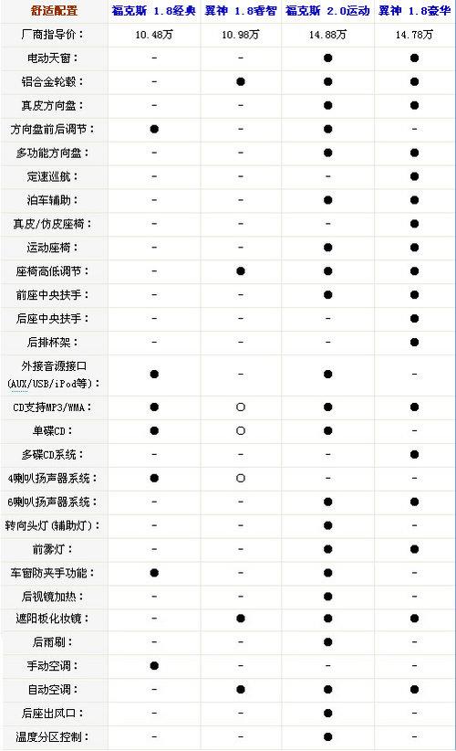 『福克斯全系配有外接音源接口 而翼神全系沒有配備』