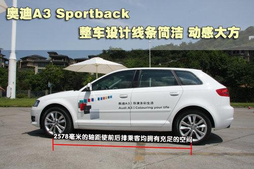 奧迪A3 Sportback車身尺寸長(zhǎng)4,292毫米,寬1,765毫米,高1,423毫米(滿載狀態(tài)下),前懸881毫米,后懸833毫米,整車比例協(xié)調(diào)舒展,2,578毫米的軸距更使前后排乘客均擁有充足的空間。
