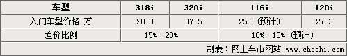 其實(shí)BMW針對(duì)相同引擎進(jìn)行功率扭矩的不同調(diào)教也是有先例的,目前國(guó)內(nèi)銷(xiāo)售的318i和320i就屬于相同引擎排量的不同動(dòng)力調(diào)教,巧合的是這兩款3系所使用的也是1系120i的這款4缸自然進(jìn)氣引擎。從價(jià)位上來(lái)說(shuō)3系的318i和320i之間的定價(jià)差距在15%--20%左右,那么未來(lái)BMW若引進(jìn)1系的116i車(chē)款,其官方定價(jià)同樣會(huì)比現(xiàn)在的120i更低。根據(jù)BMW 針對(duì)318i和320i的定價(jià)差異,116i與120i的定價(jià)差距大致會(huì)在10%--15%之間,也就是25萬(wàn)元左右。