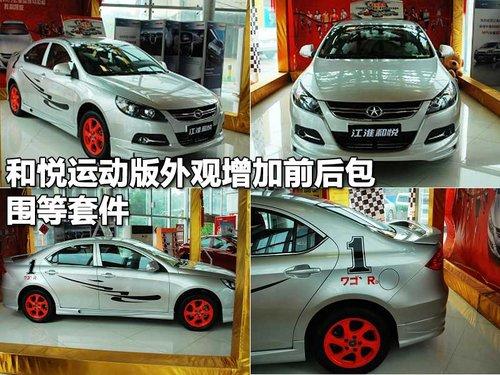 和悅運動版的外形還是具有相當?shù)挠H和力,但進行了外觀改裝后,顯得運動味十足,加了前包圍的運動版前臉給人更加銳利的感覺。和悅的前臉采用雙“U”型設計,端莊大氣,車身側(cè)面,寬大的后視鏡有些夸張,改裝的紅色鋁合金輪轂運動感很強。側(cè)裙加裝了運動包圍,另外除了尾部的運動包圍,還增加了一個運動導流板。
