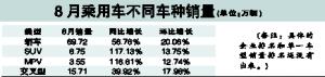 受國(guó)家鼓勵(lì)政策影響,節(jié)能車銷售大幅上漲,132款節(jié)能汽車產(chǎn)品8月銷量為1296萬(wàn)輛,較7月份增長(zhǎng)32.04%,明顯高于轎車的總體增長(zhǎng)水平。8月份,1.6L及以下排量轎車銷售4807萬(wàn)輛,環(huán)比增長(zhǎng)21.08%,同比增長(zhǎng)60.56%,占轎車銷售總量的68.94%,占比較7月份增加1.03個(gè)百分點(diǎn)。