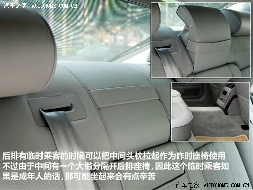 5座版車型后排中央可乘坐一名成員,靠背可以拉出一個(gè)碩大的頭枕為中間的乘員提供頸部的放松與安全保護(hù),但是由于傳動(dòng)軸的存在地板上的凸起過(guò)于嚴(yán)重,所舒適性會(huì)有折扣;中間扶手寬大厚實(shí),這也是豪華行政級(jí)轎車的最基本要素。
