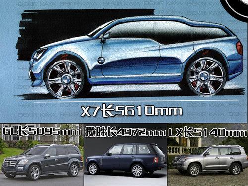 我們目前所獲得的X7的圖片僅僅是寶馬官方草圖和假象圖,不過這對于車型的未來展望已經(jīng)足夠了。寶馬X7將會基于成熟的X5平臺并且做一定修改,車身尺寸方面會比X5長760mm左右,那就是達到了驚人的5610mm。要知道目前最新款的奔馳GL550的車長不過才5095mm,寶馬X7全面超越奔馳GL級算得上是真正意義上的全尺寸SUV。