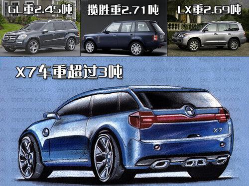 寶馬X7預(yù)計車重將超過3噸,同等級的競爭對手奔馳GL550整備質(zhì)量僅為2.5噸不到。如此看來GL級在寶馬X7面前也算是小弟了。據(jù)稱寶馬X7會融合X5和7系的多項設(shè)計元素,將X5的高性能越野能力和7系的豪華裝備完美結(jié)合。X7內(nèi)部空間會設(shè)置三排座椅,保證所有乘客都擁有極好的舒適性,而不是市面上一些SUV所謂的“假三排”。它的行李廂也是一大亮點,容積可能達到3000升左右,奔馳GL550的這一數(shù)據(jù)是2300升。