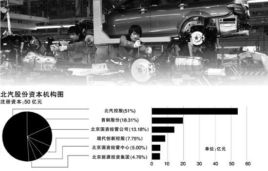 北京國資經(jīng)營公司、現(xiàn)代創(chuàng)新控股、北京國資經(jīng)營中心、北京能源投資集團分別以14.03億元、8.26億元、5.32億元、5.06億元的總出資額持有北汽股份13.18%、7.75%、5.00%、4.76%的股份。