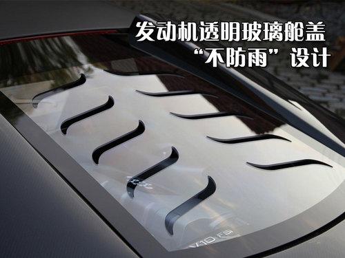 后部設(shè)計風格非常狂野,車尾中央放置牌照的區(qū)域已不見蹤影,而是換成了一塊蜂窩狀透氣網(wǎng),發(fā)動機外圍的各種管道清晰可見。排氣系統(tǒng)經(jīng)過了運動化改造,雙排氣管口徑碩大。后包圍同樣是采用碳纖維材料打造,加裝的車底擴散器極具立體感。