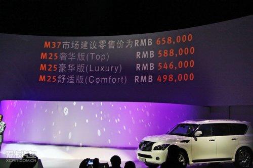 官方指導(dǎo)價(jià):英菲尼迪QX56 149.8萬元;英菲尼迪M25 49.8-58.8萬元;M37 65.8萬元