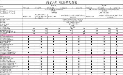 2011款高爾夫配置單