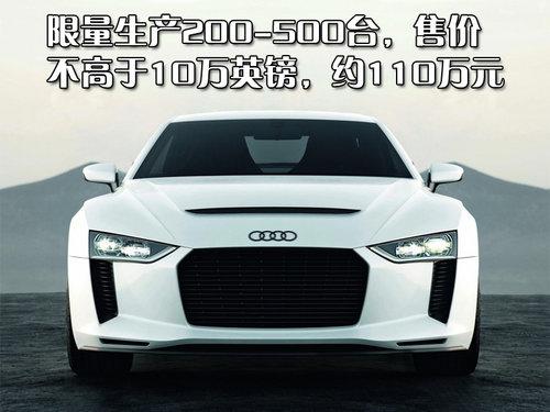 奧迪官方稱正與工程師團(tuán)隊(duì)協(xié)作將Quattro概念車量產(chǎn)變?yōu)楝F(xiàn)實(shí),需要做多處工程學(xué)上的改良設(shè)計(jì)。這款車先期會(huì)限量生產(chǎn)200至500輛,售價(jià)估計(jì)不會(huì)高于10萬英鎊,約合人民幣110萬,預(yù)計(jì)會(huì)引入國(guó)內(nèi)市場(chǎng)銷售。