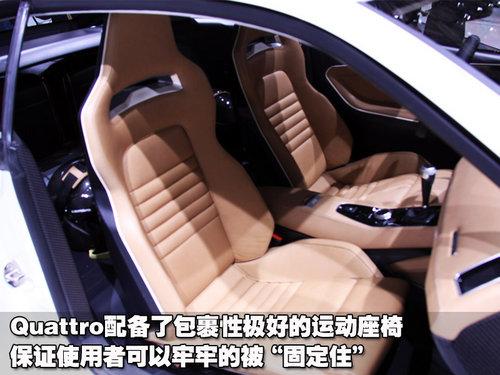 奧迪Quattro概念車兩個(gè)座椅均采用了桶形運(yùn)動(dòng)座椅,并且包裹性十分好。主駕和副駕人員坐在上面可以盡情享受駕駛帶來的樂趣,根本不用為“被拋出”所擔(dān)憂。