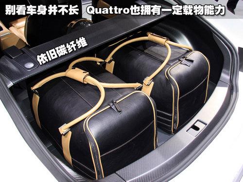 奧迪Quattro概念車除了擁有超強(qiáng)的運(yùn)動(dòng)能力外,儲(chǔ)物能力同樣并不遜色,雖然是一款掀背車,奧迪Quattro概念車行李箱依舊可以放下如此兩個(gè)大包,絕對夠用。