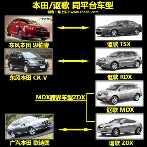 目前廣汽本田/東風(fēng)本田生產(chǎn)的部分車型都與謳歌車型同來自一個平臺。例如:東風(fēng)本田的高性能運動轎車思鉑睿就和謳歌TSX同平臺生產(chǎn)。同出一轍東風(fēng)本田的CR-V與謳歌RDX也存在同樣的關(guān)系。而即將上市的廣汽本田歌詩圖則是與謳歌MDX的跨界車型ZDX的平臺相同。廣汽本田歌詩圖上市后的價格明顯要比原裝引進謳歌ZDX的價格低,當然也更容易被中國消費者所接受。