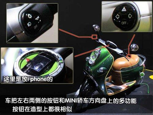 MINI Scooter E概念車將i phone手機(jī)與電動(dòng)車融合,通過位于車輛頂端的專用接口。車主的i phone手機(jī)可以放置于其中,與車輛的音響和信息與了系統(tǒng)實(shí)現(xiàn)最大化的兼容。此外,還有一項(xiàng)有趣的功能,可以通過谷歌地圖來顯示其它騎車者的位置,甚至可以發(fā)出結(jié)伴而行的邀請(qǐng)。