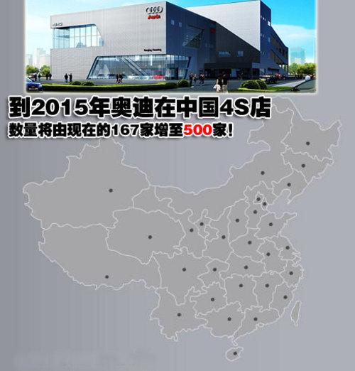 奧迪在國(guó)內(nèi)的熱銷(xiāo)使得現(xiàn)有的經(jīng)銷(xiāo)商在數(shù)量方面已經(jīng)不能滿(mǎn)足日益發(fā)展的需要,為了更好的為客戶(hù)服務(wù),奧迪在未來(lái)將持續(xù)提升經(jīng)銷(xiāo)商網(wǎng)絡(luò)的數(shù)量和質(zhì)量。預(yù)計(jì)到2015年,奧迪在國(guó)內(nèi)的經(jīng)銷(xiāo)商數(shù)量將從目前的167家上升到500家,覆蓋大部分中國(guó)主要城市,讓客戶(hù)更便捷的能享受到周到的服務(wù)。