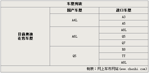 奧迪已有11個(gè)系列 幾十款車(chē)型在國(guó)內(nèi)銷(xiāo)售