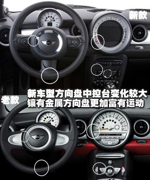 2011款MINI Cooper在內(nèi)飾方面更加運(yùn)功,換裝了三輻式多功能運(yùn)動(dòng)方向盤,中控臺(tái)上部碩大車速表中央增加了液晶導(dǎo)航顯示屏。音響控制被移至下方的中控臺(tái)之上。所有車型的音頻系統(tǒng)都配備了一個(gè)可兼容MP3的CD播放器和一個(gè)AUX IN連接裝置。
