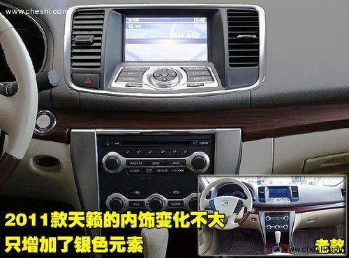 在內(nèi)飾方面,新天籟的中控臺(tái)與老款相比沒有明顯變化,按鍵錯(cuò)落分明,布局合理。大尺寸液晶顯示屏幕放置在正中間,集合了NAVI衛(wèi)星導(dǎo)航、DVD及倒車影像功能?刂婆_(tái)做工精致,人性化的角度讓你不需低頭便可操作。三個(gè)圓形自發(fā)光儀表盤,簡潔大方、清晰易讀。