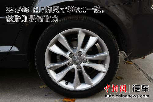 輪轂造型很是精致,既兼顧活力又不失沉穩(wěn)。225/45R17的尺寸和GTI一致,輪胎則是倍耐力。雖然和一些號稱運動的車型動輒18英寸以上的輪轂相比好像還差了一截,但這樣的尺寸在這個型號的車上已經(jīng)算是比較厚道了。