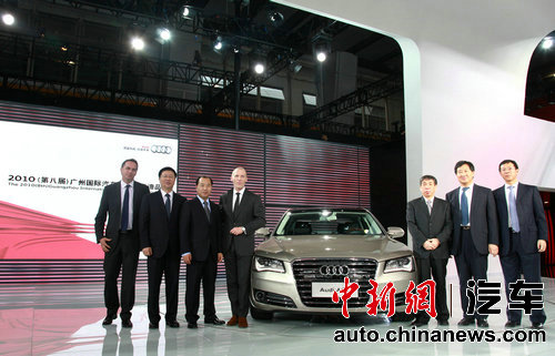 中新網(wǎng)12月21日電 12月20日,提前一個(gè)月突破全年銷售20萬輛目標(biāo)、創(chuàng)造中國高檔車銷量歷史新紀(jì)錄的一汽-大眾奧迪,以“百年輝煌 創(chuàng)領(lǐng)時(shí)代”為主題,攜全新奧迪A8L、奧迪e-tron純電動(dòng)概念超級(jí)跑車、霍希851等共計(jì)19款車型,高調(diào)亮相第八屆廣州國際汽車展覽會(huì)。