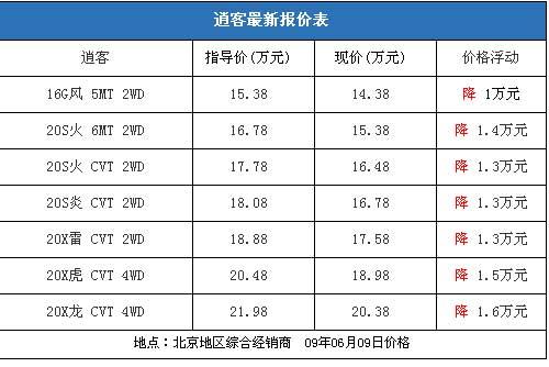 據(jù)經(jīng)銷商介紹,目前北京地區(qū)逍客現(xiàn)車數(shù)量充裕,可選的顏色也比較多,隨時(shí)到店均可提現(xiàn)車。即使部分顏色沒有現(xiàn)車,預(yù)定后也能很快到店。經(jīng)銷商表示,購(gòu)車后如果在店內(nèi)辦理一條龍服務(wù),還可贈(zèng)送價(jià)值3000元的裝飾品,到店面談還可獲得更多的優(yōu)惠。北京地區(qū)的一些東風(fēng)日產(chǎn)4S店內(nèi)逍客的價(jià)格比較穩(wěn)定,全系車型的降幅仍然穩(wěn)定在7000元,如果到店看車面談,優(yōu)惠幅度還可增加不少。