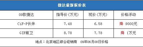 雖說捷達已經(jīng)上市多年,但是憑借著非常不錯的口碑和較低的價格,使得捷達的銷量一直都非常高,4月份銷量高達2.15萬輛,排在國內(nèi)乘用車銷量榜第三名。昨日,我們從北京地區(qū)一家一汽-大眾汽車綜合經(jīng)銷商處了解到,目前捷達伙伴的價格再次下降,僅售6.58萬元,比一個月前降低了2000元,性價比非常不錯。以下是09款捷達最新報價表: