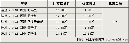 北京現(xiàn)代途勝SUV是國內(nèi)銷售較早的SUV車型,上市之初銷量一直在SUV市場一枝獨(dú)秀,但隨著同級車的競爭加大,途勝也面臨更新?lián)Q代,預(yù)計新款將在明年推出。目前在售的車型可以優(yōu)惠2萬元現(xiàn)金,具體行情如下: