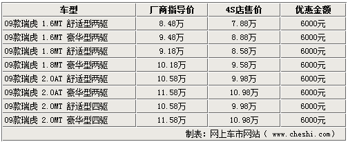 據(jù)奇瑞汽車4S店銷售人員介紹,瑞虎3目前現(xiàn)車齊全,除四驅(qū)車型只接受預(yù)訂,大概兩周以后可以提到現(xiàn)車外,2.0L自動擋車型以及1.6L和1.8L車型的現(xiàn)車比較齊全,目前全系車型都可以優(yōu)惠6000元,歡迎消費(fèi)者到店賞車試駕。