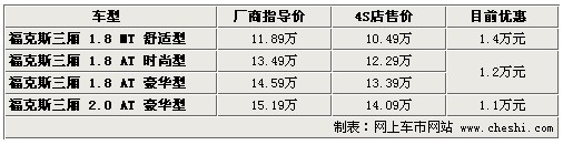 據(jù)4S店銷售人員介紹:目前?怂谷龓1.8升三款車型現(xiàn)車充足,尤其銀色、灰色、藍色、黑色車型現(xiàn)車較多,手動擋車型目前優(yōu)惠1.4萬元,優(yōu)惠后僅售10.49萬元,1.8升自動版車型優(yōu)惠1.2萬元。2.0升車型目前現(xiàn)車較少,顏色也不齊全,訂車需等待3周左右,目前優(yōu)惠1.1萬元。