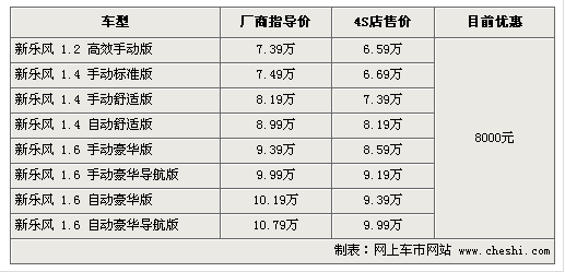 據4S店銷售人員介紹:目前雪佛蘭新樂風全系優(yōu)惠達8000元,較之前優(yōu)惠幅度持平。1.2車型目前無現車,預訂需等1-3周左右。由于1.2升較小的排量與新樂風略大的車身配比并不十分完美,所以選擇1.4升排量車型消費者較多,同時現車也非常充足,顏色較齊全。1.6升車型目前現車較少,顏色也不夠齊全,銀色車型較多,預定需等待1-2周時間。