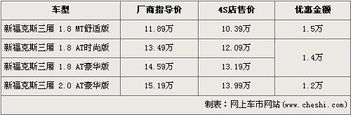 ?怂箲{借出色的外觀設(shè)計(jì)及極佳的操控性贏得了市場(chǎng)的認(rèn)可,在銷量方面一直保持迅猛的勢(shì)頭。尤其新款福克斯的上市,一改內(nèi)飾略顯粗糙的詬病,使得福克斯更趨于完美。?怂共捎昧宋譅栁諷40底盤(pán),將操控進(jìn)行到底,這一優(yōu)勢(shì)博得全世界的掌聲,名副其實(shí)成為了這個(gè)級(jí)別的標(biāo)桿車(chē)型。據(jù)網(wǎng)上車(chē)市價(jià)格系統(tǒng)檢測(cè)顯示,目前三廂?怂谷祪(yōu)惠1.5萬(wàn)元,具體車(chē)型價(jià)格請(qǐng)看下表: