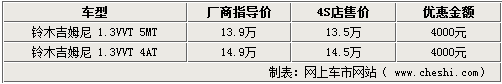鈴木微型SUV-吉姆尼的動力源于鈴木運轉平穩(wěn)的M13A DOHC發(fā)動機,該發(fā)動機以其反應靈敏、高燃油效率而聞名于世,且頗受年輕消費者的青睞。網(wǎng)上車市網(wǎng)站了解到,目前在北京地區(qū)購買進口鈴木吉姆尼可以得到4000元的現(xiàn)金優(yōu)惠。具體詳情如下: