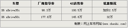 寶馬M系列車型擁有非凡的運動性能和高超的工藝。其中x5M和x6M是寶馬旗下的兩款高性能運動SUV,同時也是受關(guān)注度最高的兩款車型。近日根據(jù)網(wǎng)上車市價格監(jiān)測系統(tǒng)x6M的普通版車型X6價格出現(xiàn)了松動,全系最高優(yōu)惠達到了32萬元,具體車型價格行情請看下表: