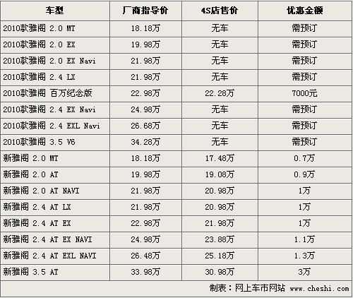 雅閣一直是中級(jí)車市場最受矚目的車型之一,棱角分明的外觀以及舒適的內(nèi)飾空間以及豪華程度成為眾多商務(wù)人士最佳選擇。目前隨著2010款雅閣的上市,整車的性價(jià)比進(jìn)一步提升,但4S店僅有紀(jì)念版車型,其他仍需要選擇。