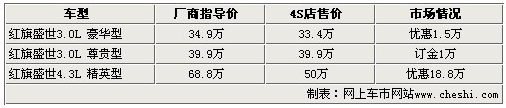 據(jù)紅旗盛世4S店銷售人員介紹,很多紅旗汽車的愛好者一直很關注盛世的情況,到店看車的消費者也多。目前紅旗盛世車型3.0L豪華型有少量現(xiàn)車,4.3L精英型僅有兩臺現(xiàn)車,3.0L尊貴型暫時沒有現(xiàn)車。如有意購買3.0L尊貴型可以預訂,訂金為1萬元,但是新車到店的時間不能確定。其他兩款有現(xiàn)車的車型均有不同幅度的優(yōu)惠,購買3.0L豪華型可享1.5萬的現(xiàn)金優(yōu)惠,4.3L精英型的降價幅度較大,達到了18.8萬,最終售價僅為50萬元。