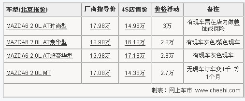 隨著新款馬自達(dá)6的即將上市銷售,目前銷售的老款車型也出現(xiàn)了較大幅度的松動(dòng)。據(jù)網(wǎng)上車市價(jià)格監(jiān)測(cè)系統(tǒng)顯示:目前購(gòu)買馬自達(dá)6的消費(fèi)者最高可享受到最高3萬(wàn)元的促銷優(yōu)惠,最低售價(jià)已經(jīng)跌破了15萬(wàn)元關(guān)口,對(duì)于一款中級(jí)車而言,這樣的價(jià)格已經(jīng)貼近A級(jí)車的身價(jià)了。