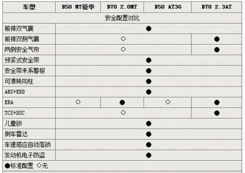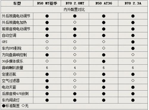 通過(guò)此項(xiàng)的對(duì)比,可以發(fā)現(xiàn)兩款兄弟車(chē)型在外觀以及內(nèi)部的絕大多數(shù)配置均極為近似,僅僅是在高配車(chē)型之上有了一些不同的豪華系統(tǒng),如B70 2.3AT豪華車(chē)型上的GPS以及DVD系統(tǒng),還有B50 AT3G版之上的多媒體娛樂(lè)系統(tǒng)等等。而B(niǎo)50全息均配備了定速巡航系統(tǒng),也是新車(chē)的一大亮點(diǎn)!