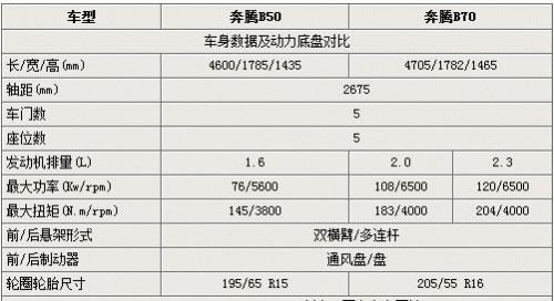 奔騰B50車(chē)長(zhǎng)4600mm,比同平臺(tái)的B70要小近100mm,軸距同為2675mm。而B(niǎo)50的1.6L引擎動(dòng)力表現(xiàn)要略遜于B70所搭載的2.0與2.3L引擎,但也足夠滿足城市代步的需要。15存的輪胎尺寸也要略小于B70。