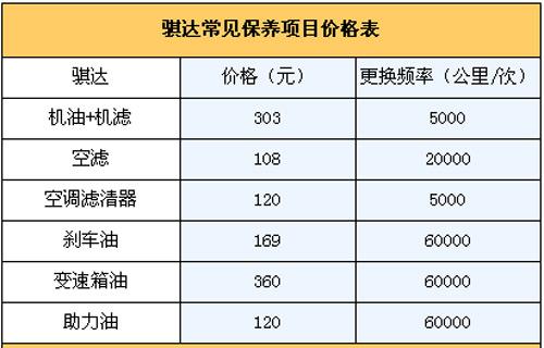 4.保養(yǎng)費(fèi):我們向東風(fēng)日產(chǎn)4S店售后服務(wù)人員咨詢過,騏達(dá)常規(guī)保養(yǎng)周期定為每5000公里一次,首保在購(gòu)車后行駛1000km或一個(gè)月進(jìn)行(以先達(dá)到者為限),二保5000公里時(shí)進(jìn)行,前兩次保養(yǎng)免費(fèi)。假設(shè)一年跑2萬(wàn)公里,則需要做保養(yǎng)四次。前三次都為常規(guī)保養(yǎng)(只更換機(jī)油機(jī)濾),一次303元、一次379元交替進(jìn)行。第四次保養(yǎng)(更換機(jī)油機(jī)濾+空濾+空調(diào)濾芯)為637元;如此一個(gè)周期往復(fù)。另外4萬(wàn)公里保養(yǎng)時(shí)需要更換剎車油和變速箱油,保養(yǎng)價(jià)格為1090元,那么2年/4萬(wàn)公里總費(fèi)用大概需要3318元左右,平均一年為1659元。