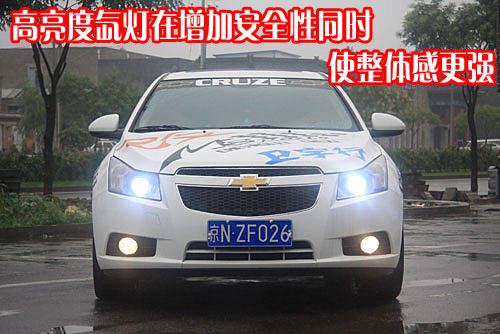 這個(gè)“街跑”科魯茲主要針對(duì)外觀進(jìn)行了一系列改裝。首先,它的車頭部分最為顯著的改變?cè)谟谠黾恿烁吡炼鹊碾瘹獯鬅,使原本炯炯有神的“鷹眼”更加夸張,不僅看起來漂亮,而且提高了夜間行駛安全性。