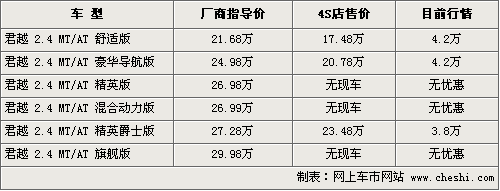 作為一款中級商務車,新君越在配置以及空間有一定的特點,它裝備了強大的智能中文語音導航系統(tǒng),三音源分控式DVD劇院系統(tǒng)以及方向盤控制的車載藍牙電話系統(tǒng)充分考慮到了商務人士的乘坐需要。而即將上市的新款君越在外觀上的全系升級又讓消費者重新認識到君越的獨特魅力。目前,筆者從別克經(jīng)銷商處了解,新款君越已經(jīng)開始接受預訂,老款優(yōu)惠增加,具體行情如下: