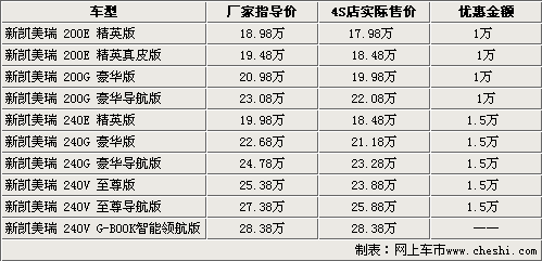 新凱美瑞自06年至今,隨著B級車市場競爭的不斷加劇,中間經(jīng)歷了多次改款。目前銷售的新凱美瑞從外觀、配置以及整體的性價比方面都比以往車型更高,同時全系近10款車型,為消費者提供了多元的選擇空間。目前新凱美瑞全系最高可優(yōu)惠1.5萬元,具體行情如下: