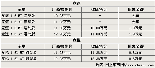 青年蓮花競(jìng)速?gòu)纳鲜泻笠呀?jīng)有兩次官方降價(jià),總降幅達(dá)兩萬元。據(jù)青年蓮花4S店銷售人員介紹,競(jìng)速目前只有運(yùn)動(dòng)版兩款車型銷售,這兩款車型都可以優(yōu)惠1.9萬元,最低售價(jià)僅為10.08萬元。而剛上市時(shí)間不就的競(jìng)悅目前也有6000元的優(yōu)惠幅度,而4S店銷售人員表示,如果到店還可以有更多的優(yōu)惠政策。