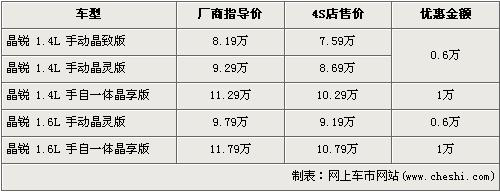 據(jù)記者走訪北京多家斯柯達(dá)經(jīng)銷店獲知,近期購買斯柯達(dá)晶銳的消費(fèi)者可以得到最高1萬元的優(yōu)惠。斯柯達(dá)晶銳的手動擋車型相對優(yōu)惠幅度小一點,但也達(dá)到了6000元。經(jīng)優(yōu)惠后,入門級的斯柯達(dá)晶銳1.4L手動晶致版售價從8.19萬元下降到了7.59萬元。手自一體的車型優(yōu)惠金額達(dá)到了1萬元,全系最高配的1.6L手自一體晶享版售價從11.79萬元降到了10.79萬元。